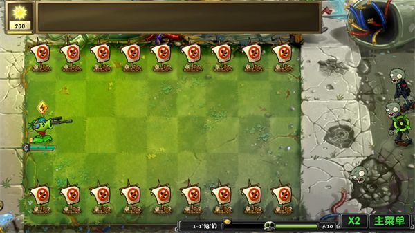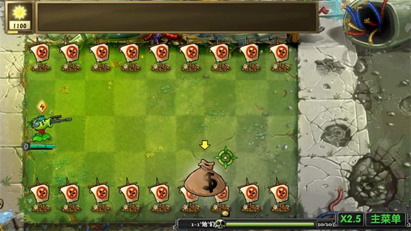 5、在左上角可以调节游戏速度,我们要注意该版本的僵尸出现速度很快,需要及时种下攻击类的植物