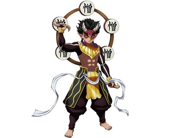 上弦之肆。在半天狗的分 裂体们——积怒、可乐、空喜、哀绝陷入绝境之时,积怒吸收了其他分 裂体后显现的形态。