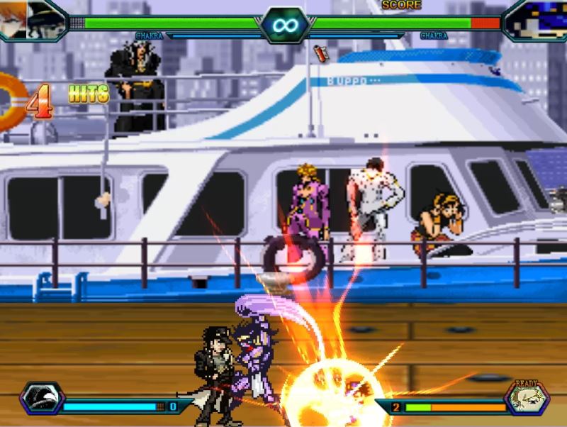 死神vs火影jojo版是一款我们童年非常经典的像素格斗竞技游戏,这款游戏中将死神,火影,JOJO中的角色都加入了进来,带给玩家从未体验过的战斗游戏体验,游戏的战斗做的非常出色,无论是流畅的动作还是炫酷的技能特效都带给玩家出色的战斗体验,喜欢格斗竞技的玩家一定不要错过,快来操纵你喜欢的角色来进行战斗。