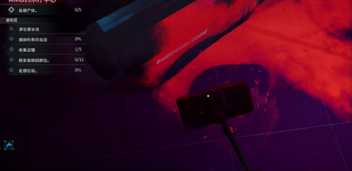10、继续清理血迹,玩家也可以选择边清理血迹,边收集违 禁品。