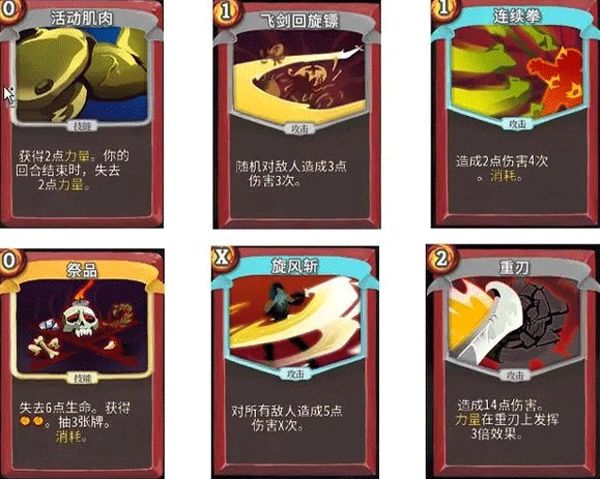 力量战顾名思义就是用力量卡配合多级攻击或者吃苦打成吨级伤害,力量战是我最喜欢的流派。它无脑的打发输出奇高,而且进攻能力强,相对来讲防守弱,需要注意血量。