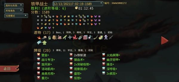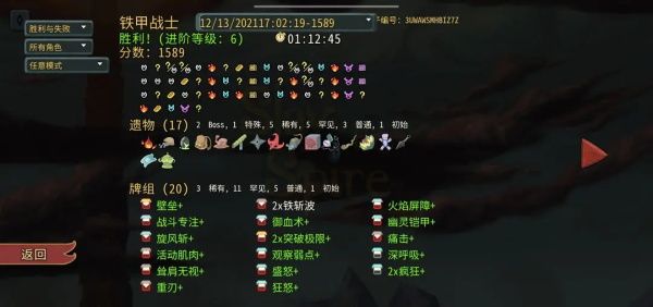 开局攻击防御各删一张,前期拿两张交锋补伤害,后期感觉交锋卡手可以删掉。中期拿到火焰屏障、幽灵铠甲、盛怒配合壁垒叠甲,战斗专注和深呼吸过牌,过牌叠甲够够的。