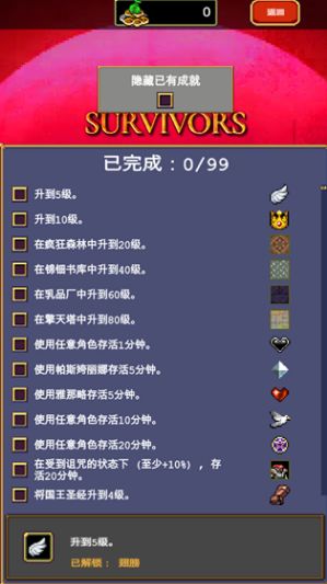 玩法丰富,割草的手感非常的优秀,像素画面设计简约明了,玩家还可以在游戏中使用各种各样的武器来进行战斗,获得极致的快感!