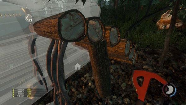 利用斧头等攻击砍伐低矮灌木和小树就能获取建造资源。