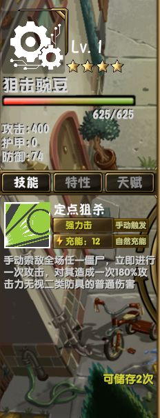 定位:兼具输出、生存的前排植物,适合处理低血量僵尸 + 自我续航。