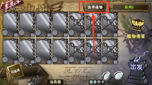 1)点击上方的【选择植物】可以选择你想要出场的植物。