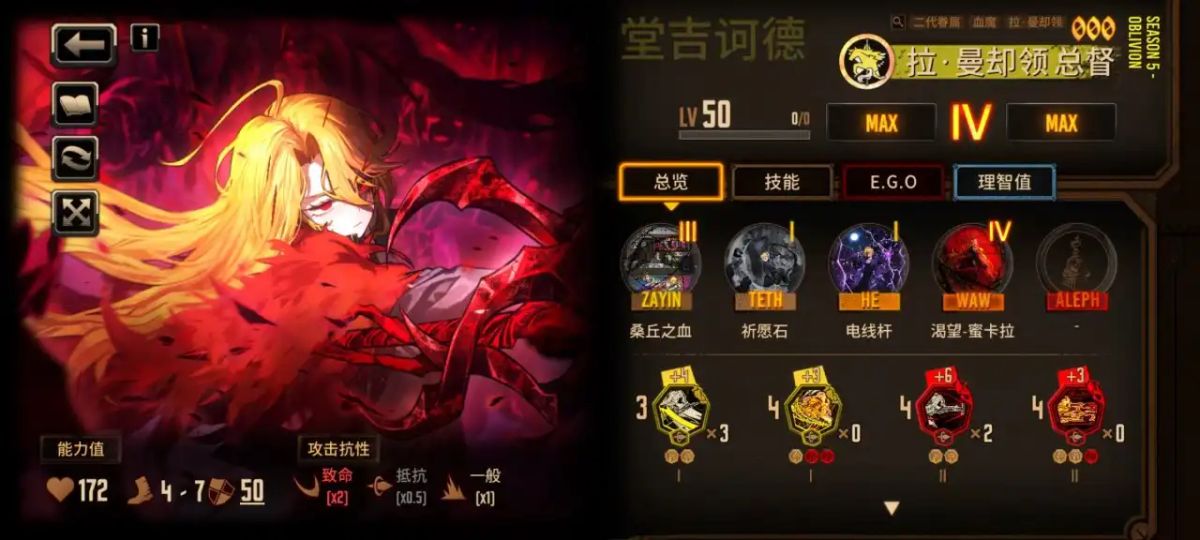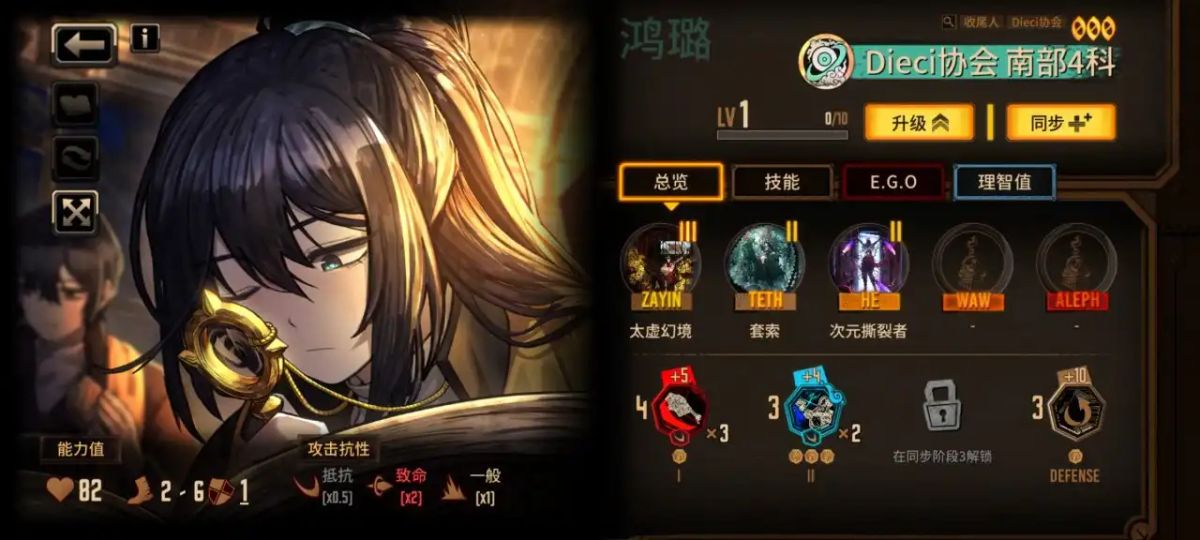 4、人格等级最高50级(人格等级上限会随着游戏进度和版本改变),可通过上场人格进行战斗或消耗人格训练券Ⅲ。png人格训练券获得经验进行等级提升,人格同步等级最高IV阶(目前),可通过消耗纺锤进行提升,而从III阶提升至IV阶时需要额外消耗对应罪人的自我碎片。