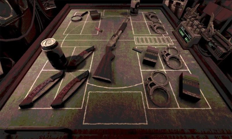 3、玩家与恶魔的血量在赌桌上的电台中以电量的形式呈现,如果受到实弹射击血量就会减少,是空 包弹血量则不变。