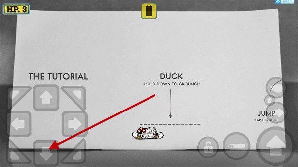 1、我们可以点击屏幕左下角的向下的按键来趴下,可以躲过敌人的一些攻击。