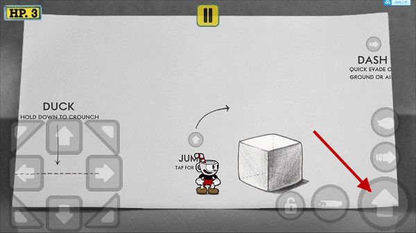 2、点击屏幕右下角的向上的按键就可以进行跳跃。