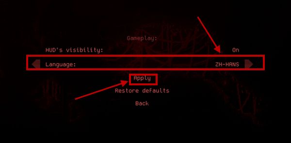4、最后在这个界面点击屏幕中的LANGUAGE选项右侧的语言选择,切换到ZH-HANS,点击APPLY就行。