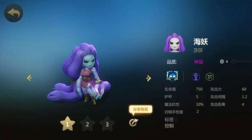 技能:凝视(使4格范围内面向自己的敌方棋子攻速降低20%,持续3秒,期间持续面向自己超过2秒的敌方棋子会被石化2秒。CD20秒)海妖是猎人阵容中前期的一个控制型棋子,技能范围广非常好用,但是1星的海妖回蓝有点慢,如果有回蓝装不妨丢给她,2星后可以把她放在前排,追2星即可。