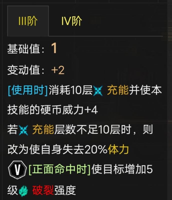 某些技能有额外的条件,可以以不同方式提升它们的威力,例如在上面的例子中,如果鸿璐在前一个回合没有受到任何伤害,他的硬币威力将从4变为6。
