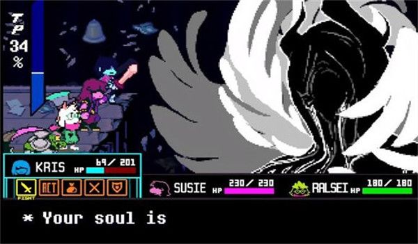 在战斗中,Kris可以行动。他的武器是一把剑,其可以在防御时转变为盾牌。