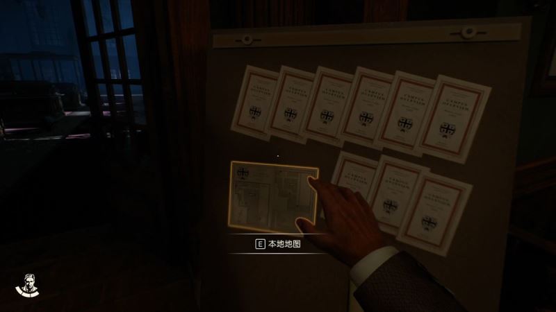 身后的板子上有个高亮的东西,靠近后按E可以获得本地地图。