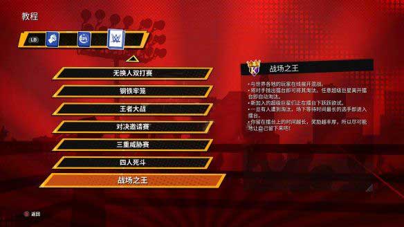 参加各种你所喜爱的比赛,畅享其中的乐趣和变化。这些比赛包括钢铁牢笼、王者大战、四人死斗和全新的竞技场挑战!