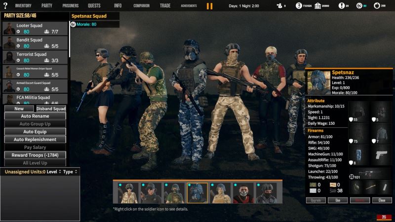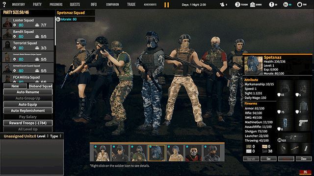这个小队看起来其实就是一支美军雇佣兵,穿的都是清一色的好甲,而且拿的武器都是火力凶猛的半自动步枪,剩下一个M4,火力上不算很强,但是抗线很不错,可以远距离接敌。但是招募的费用比较高,在初级阶段就要花1000块钱来招募一个,后期的工资不算高,有钱建议多培养几个。