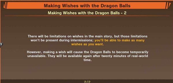 一、完成【弗利萨篇】后(在此之前菜单里的【龙珠】选项是灰色的),系统会提示你龙珠系统已解锁,七颗龙珠散落在世界各地,集齐它们可召唤神龙。注意:“【龙珠】是指只要收集7颗,就可以实现愿望的神奇圆球,它正散落在世界各地。收集7颗后,只要进入【主选单】>【龙珠】,就可以许愿得到稀有道具、大量Z珠,甚至是让已经打倒的劲敌复活。之后,就等你去确认复活后的劲敌变成怎样了。但是,可以许愿的时机会随着主线剧情的发展而产生变化,请仔细思考后再做选择哦。虽然进行主线剧情的时候,可许的愿望会受到限制,但是章节间的中场休息时间并不会限制次数,可以许无数次愿望。许愿过后,龙珠就会暂时拾取效力。需在现实世界的20分钟后才会恢复实现愿望的效果。