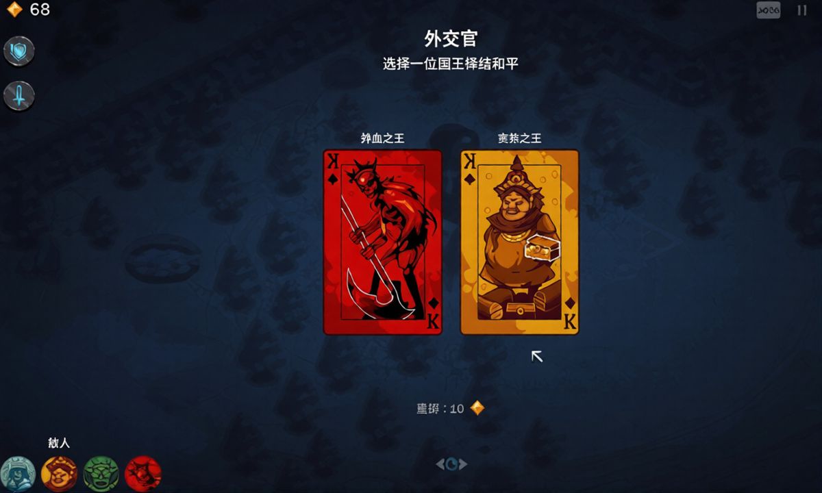 2、玩家同意后就可以和敌国国王结交和平,需要在出现的名单中选择一个,不满意还可以进行刷新