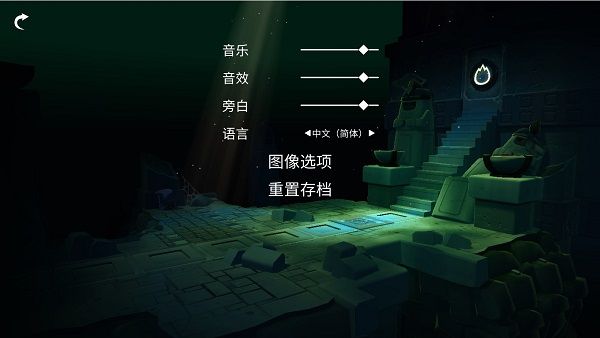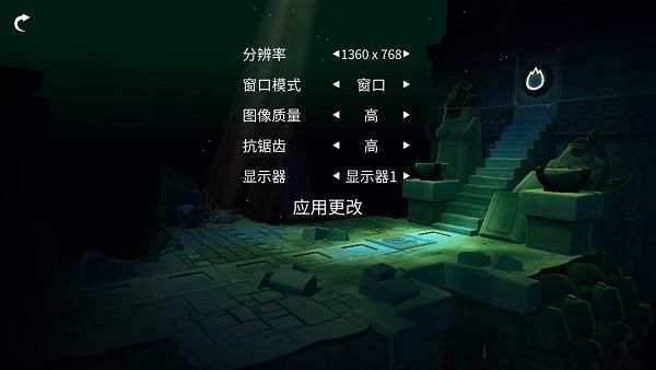 3、中文设置好之后,一切的操作都变的简单明了许多,通过之前的操作,你可以在切换语言的选项栏里调整音乐、音效的大小,以及旁白的声音高低。其他的选择还有重制存档和图像选项,造图像选项栏里,可调整分辨率大小,是否为窗口模式及图像质量,显示器等设置,点击“应用更改”就可以了。