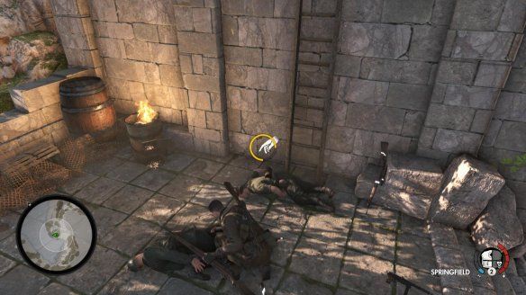 继续切换至下一个任务"Find Kessler",在目标区域有三个狙击手,但同时也有噪音。可以利用噪音将三个狙击手解决。