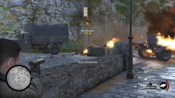 在数小时紧张刺激的游戏中,你要在各个庞大的战役关卡里猎杀数百个敌人、车辆和纳 粹高级军官。亲手杀出一条通往你的目标的道路,发现新的狙击手巢穴,找到秘密的支线任务、收藏品等等!