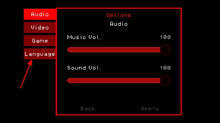1、玩家首次进入游戏可以看到界面是英文的,直接往左边滑动找到选项