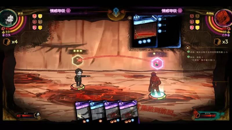例:你的B骰点数为5,对手的A骰点数为4,那么你会对对手造成5-4=1点混乱伤害。点数互换之后,则是对手会对你造成5-4=1点的伤害