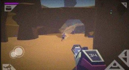 1、游戏视角是第一人称FPS类型,UI界面较为简洁,操作也不复杂,玩家控制方向键移动,滑动屏幕控制视角,屏幕上的两个按钮用来射击和跳跃,虽然实际操作起来按钮会显得有点拥挤,但是设置里可以调节按钮位置,调整成自己习惯的位置。不过部分界面的返回按钮较小,开始玩的时候不容易发现,经常造成误操作。