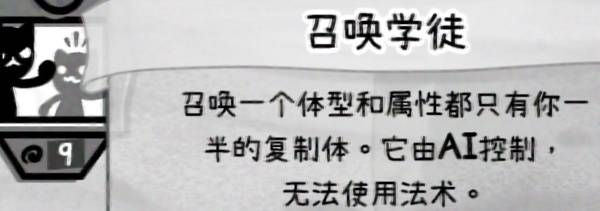 描述:最离谱的召唤技能,生成一个不会使用技能的迷你我,升级后能够使用技能,想不到任何比这个更好的主动技能了;解锁了建议一律学这个,唯一缺点是游戏时长会被严重拔高,无脑AI经常低效操作导致等待时间巨长,但是通关是保证了。不过一直玩这个流派可能会腻。泡泡男孩用这个就是想死了(笑)