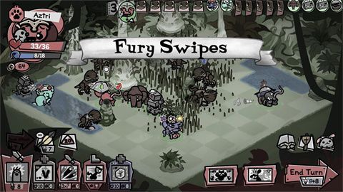 欢迎来到布恩县,家里的猫丁一天旺过一天,每天都能组建喵喵战队,还能给猫咪带上职业项圈(战士、肉盾、法师等等等等)。派出你的突变猫科小队,完成一场又一场回合制战斗,走到冒险的终点。注意喔,站位和走位要谨慎,能力联动可以很强大,还有各种场景花样在等着你。