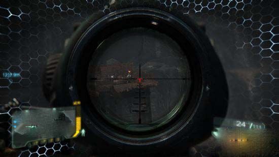 一把中规中矩的单狙,连发间隔以单狙来说不算长,装甲全满下要两枪,打隐身与没开装甲的都是一枪(打四肢例外),基本上没有所谓射程这种东西,不管多远,只要没开装甲都是一枪,如果把血量+装甲能量算成200HP的话,它的攻击力约是160。优点是攻击力高,缺点则是需要计算飞行时间。