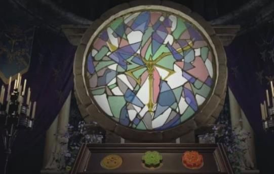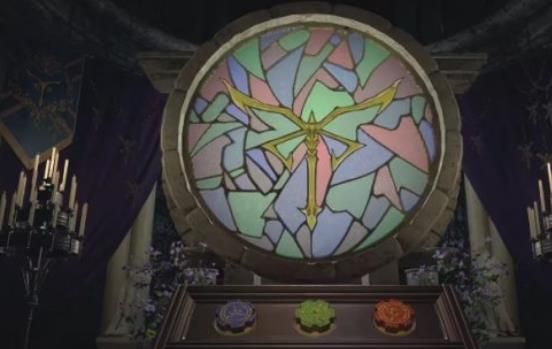3、第三个密码锁在教堂中,完整图案如下,右侧的柜子当中还有一个道具。