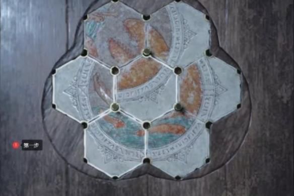 2、第二个密码锁在湖泊处,有两个,一个在右上角的祭 坛,另外一个在山洞中,解锁方式如下: