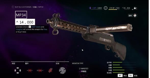 1、MP34:解放3个以上钟楼就会解锁免费获得该武器,或者购买。