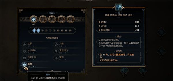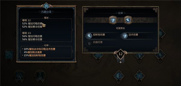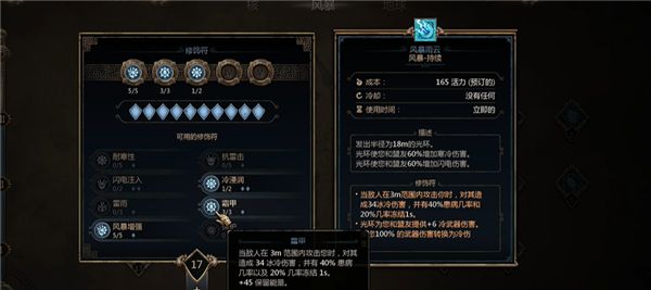 选择“风暴增强”满级:提供额外伤害。配合“双甲”和“冷浸润”:提高冰冷伤害和增伤效率。