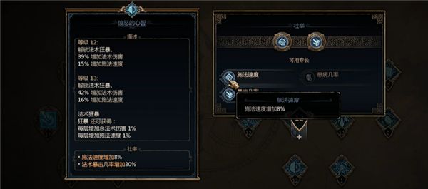 愤怒心智(满级12点):提升暴击几率和施法速度。