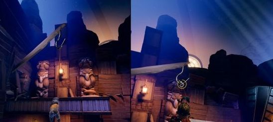 难点三:过来之后,直接跳到对面的台子上,然后科迪把挂有钩子的木杆抬起来,小梅跳到对面去才开关。