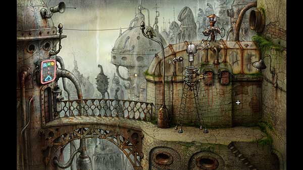 《机械迷城》没有文字或语言对话,通过图像、动作和音效来传达情感和故事细节。