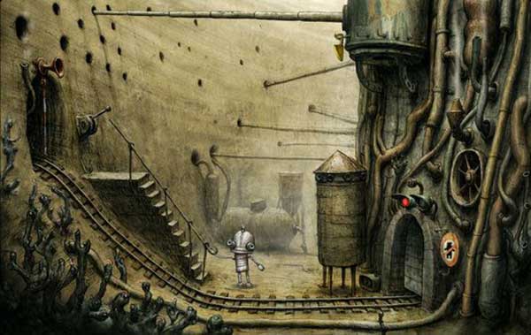机械迷城(Machinarium)中每个角色都是机器人,包括我们的小英雄,他将为了对付坏人并解救自己的女朋友展开了一系列的解谜,没有多余的对白,游戏情节和线索皆靠细腻的动画来表现。