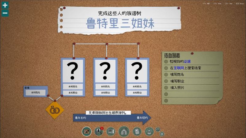 一上来是简单的推理教程,从报纸头条的鲁特里三姐妹开始完成家谱,也展示了在游戏中是如何通过在互联网、期刊和图书馆收集信息,完成推理并填充家谱的。