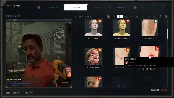 随着玩家日子的推进,他们会解锁新的工具,帮助他们检查感染迹象。通常,这些药物是因为出现新症状才被允许使用。这些工具也可以通过花费研究点(RP)来升级。