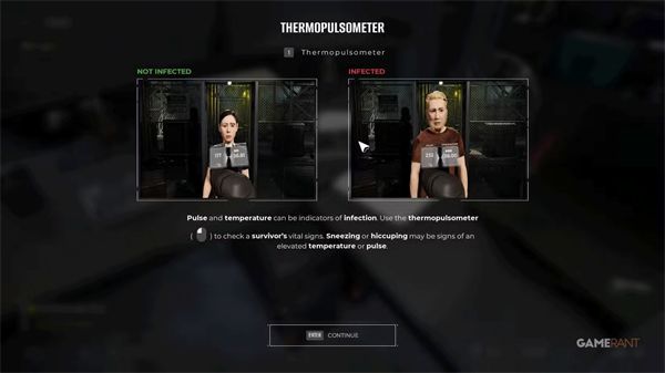 用体温计等几秒钟再测量最终数据。任何超过41摄氏度都是感染的信号,脉搏超过180次/分钟也是。他们也可能生病或感染,结果略低,相关范围可在菜单中查看。提供颜色的升级极大帮助,玩家无需记忆边界。