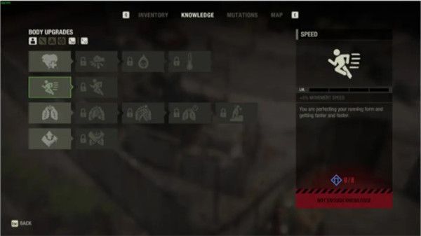 第三行:体力增加,降低近身攻击消耗,降低躲避消耗,加速体力恢复,加速疲惫恢复。