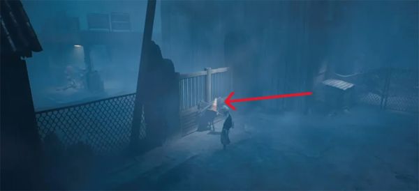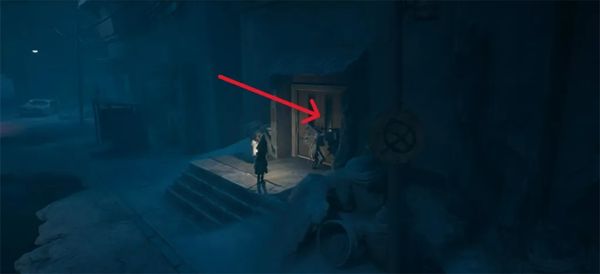 熨烫的敌人已经走了,所以穿过去上楼。你会发现敌人正在翻垃圾桶。所以躲在它后面,跟着他移动。一旦他停下,向南移动。向左转,穿过有铃铛的门。
