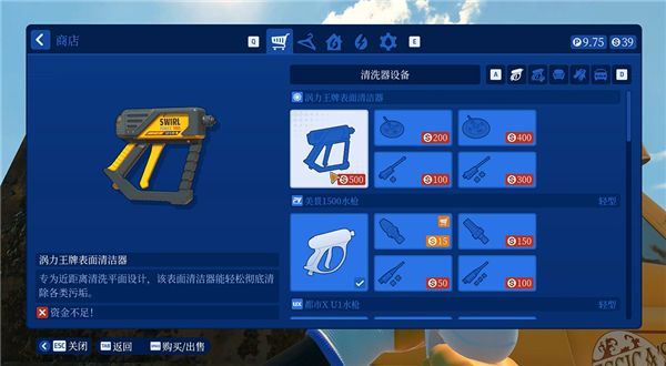 5、在商店中可以购买清洁设备、工作服。