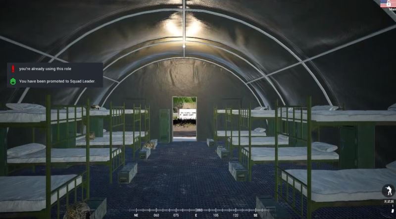 1、战术小队squad新手训练营进入后的出生地点是军营帐篷。经过一段语音介绍后就可以开始正式训练了。