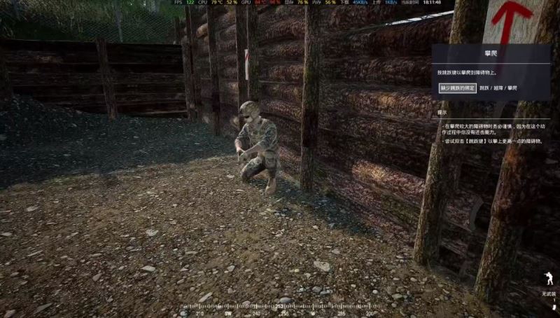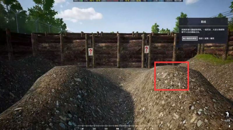 ②第二个障碍是比较高的木板需要站在土坡上助跑按2下空格即可翻越。