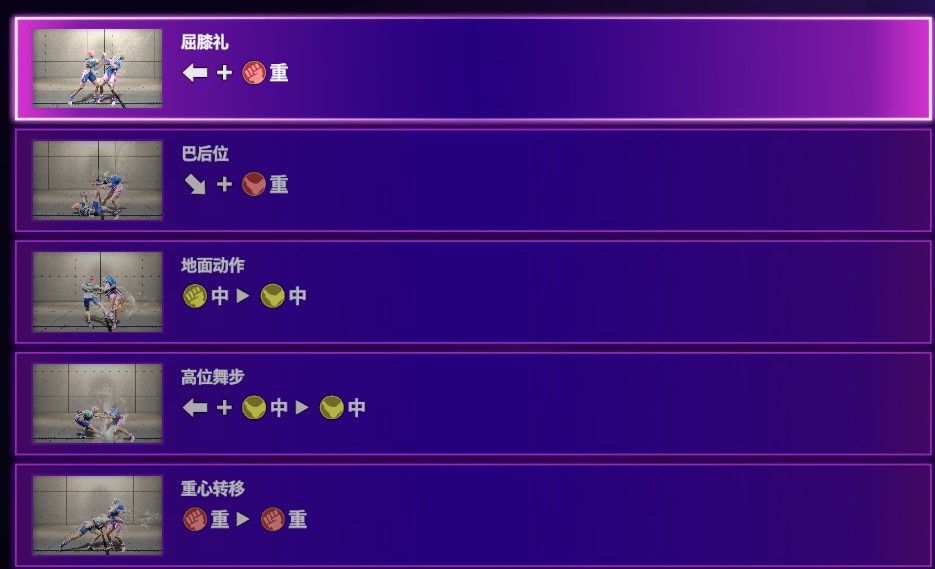 重心转移 hp-hp,向前弯腰伸出手向前下方攻击一下后将对手拉向自己,也无法直接形成连段,距离近中
