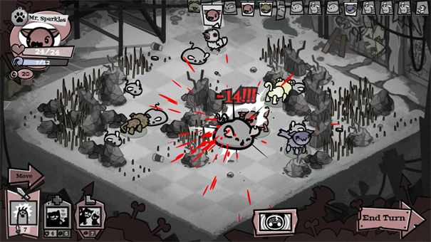 炸弹老鼠: 会在不同角色行动间隙投炸弹,炸弹只要受到攻击就直接灭,不灭会在回合末尾爆炸。尽量先拆炸弹再打boss,有多打的角色就能很好应对这个boss。另外尽量不要减员,减员就会恶性循环。还有千万不要用牧师的治疗或者火焰攻击打炸弹